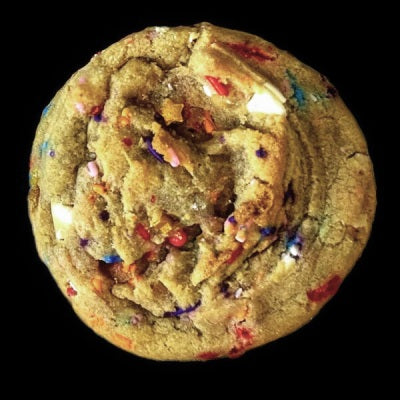 Our decadent birthday cake cookie with white chocolate and sprinkles for a celebration.